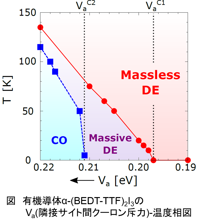 固体中の伝導電子の速さは光速の千分の1程度だが、条件が揃うと相対論的粒子に類似した挙動を示す。このような広義のディラック電子系はグラフェン、ビスマス、有機導体など広範な物質において見出され、固体物理の主要な研究テーマの一つとなっている。近年ではディラック電子間のクーロン相互作用に起因する新物性が次々と見出され、新たな広がりを見せている。中でも有機導体のディラック電子系では、電荷秩序相とゼロ質量ディラック電子相が隣接し、圧力により電子相関の強度を制御できるディラック電子系が実現している。本稿では、有機導体のディラック電子系において見出された多彩な競合現象や新奇なスピンゆらぎを中心に、ディラック電子系における電子相関効果を解説する。